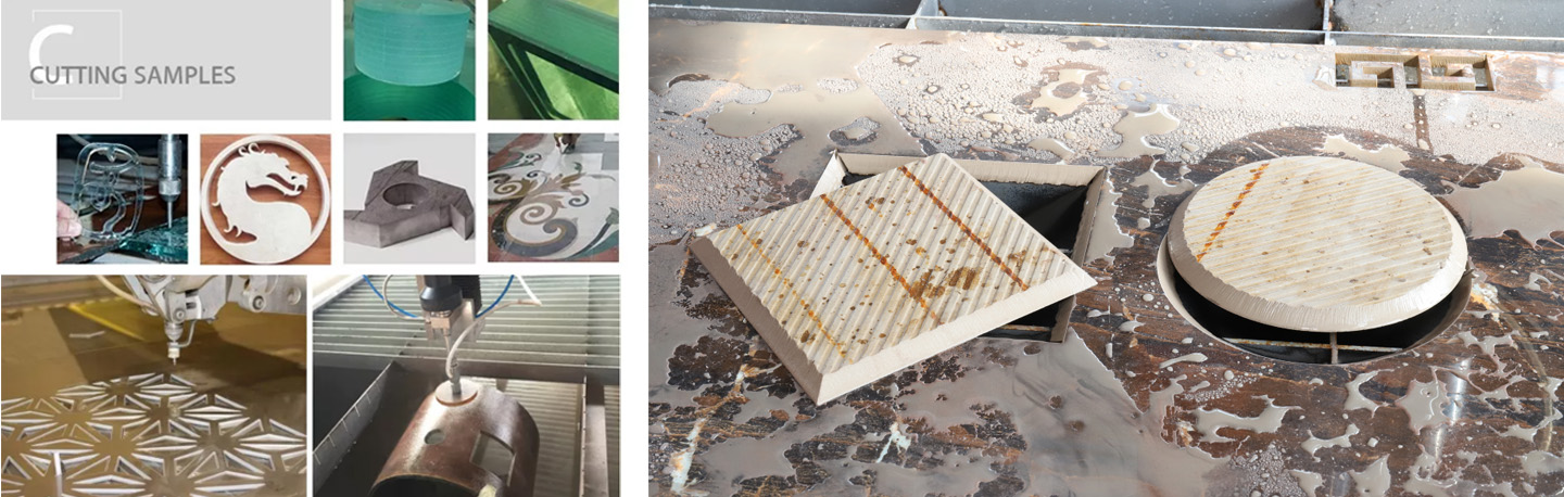 8. O cortador de jato de água pode cortar metal, borracha, espuma, plástico, materiais compostos, pedra, azulejo de cerâmica, mármore, vidro, etc.